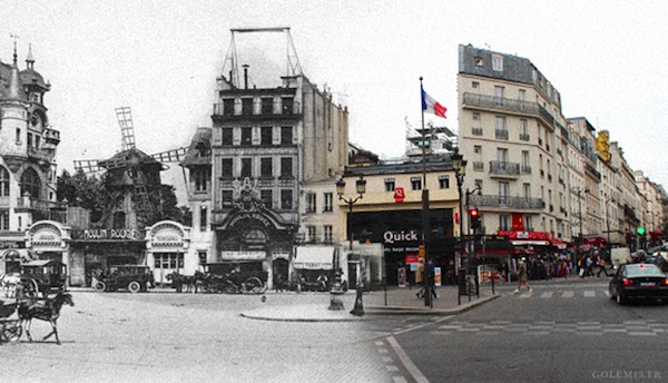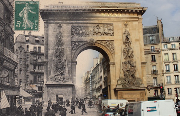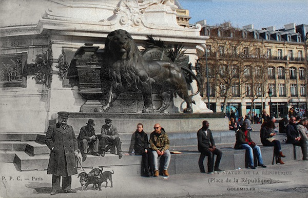 The clever folk at the website Golem 13 have created a marvelous set of photomontages that marry images from vintage Paris postcards with the same contemporary scenes photographed last month. You can see the complete series of images here.