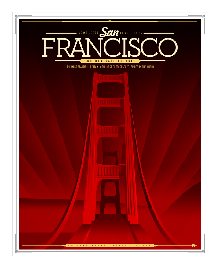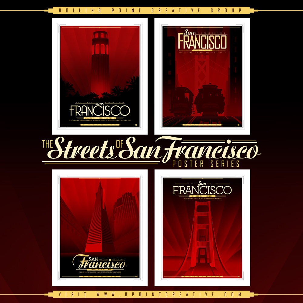L.A.-based design firm Boilng Point Creative produced this terrific new poster series celebrating San Francisco’s enduring allure for visitors and residents alike. Prints from the series are available right here on etsy.