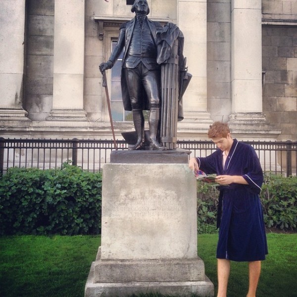When I’m on the road I like to dress casually and comfortably, but this dude has taken it to a new level. The anonymous guy, known only as “Mr. Bathrobe Crusader”, has been visiting the sights around Europe for the past month clad in a comfy blue bathrobe and slippers. He has invited us all to follow his wanderings on his Instagram page.