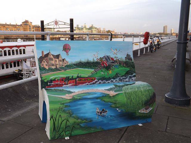 The 50 unique book bench sculptures are created by local artists and are linked to iconic British books, such as Peter Pan, 1984, Great Expectations, Through the Looking Glass and the Sherlock Holmes books. Each bench is situated in an area with a connection to the book. Maps to follow the Book Bench Trail can be downloaded here.