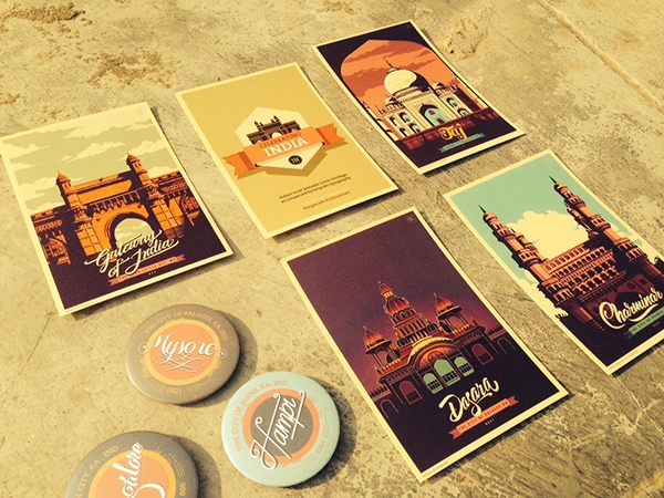 Ranganath Krishnamani is a very talented artist/design/illustrator based in Bangalore, India. His new series of travel posters and postcards of iconic Indian landmarks has a marvelous early 20th century aesthetic that wouldn’t be out of place in a Wes Anderson film. You can see more on his blog.