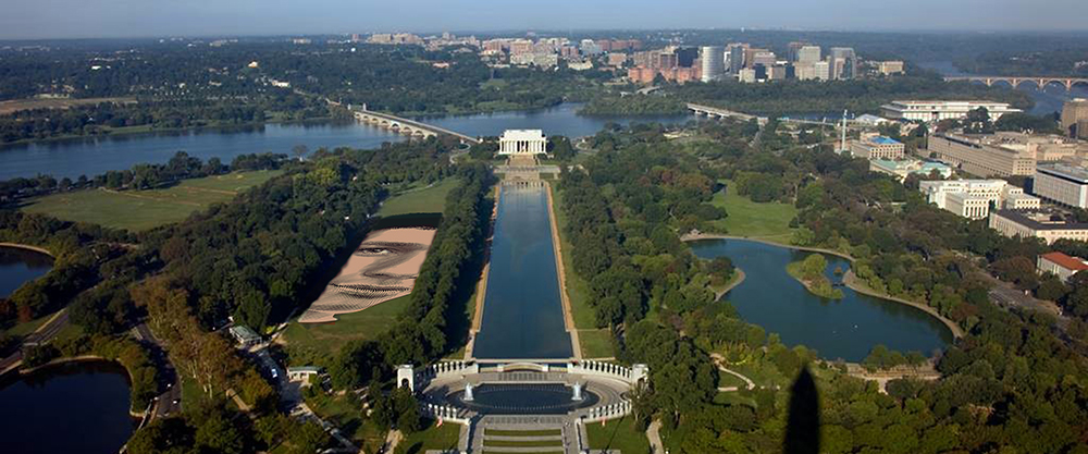 Inspired by the motto of the United States—E Pluribus Unum or Out of Many, One—Cuban-American artist Jorge Rodriguez-Gerada has created a monumental landscape portrait on the National Mall in Washington DC. The portrait image is a composite highlighting the diversity of America. The enormous portrait, visible from space, is composed of 2,000 tons of sand, 800 tons of soil and 10,000 wooden pegs.