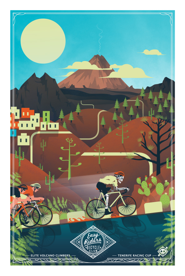 French graphic designer Ladislas Chachignot has a passion for travel, biking and illustration. The Aix-en-Provence-based artist has combined all three in his crazy cool project “Easy Rider”. He created the series of illustrations set in eight locations around the world showing bikers interacting with the local cultures and geography. According to Chachignot, “This project is a tribute to bike riders who ride until they die and even after-death”. You can see more of the work and purchase posters printed on archival paper at his website.
