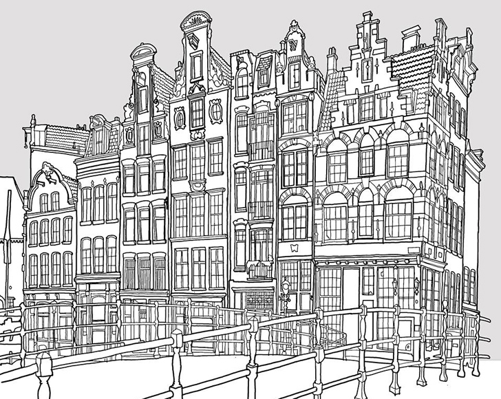 It seems that adult coloring books (no, not that kind) are a thing now. They’re even topping Amazon’s bestseller list. Ontario Canada-based artist Steve McDonald has created a timely coloring book for grown-ups called Fantastic Cities. The highly detailed architectural drawings provide both “real and imagined” views of New York, Amsterdam, London, and many more cities around the world. So, get out your secret crayon stash. The beautifully imagined book will be out on from Chronicle early this summer and can be pre-ordered right here.