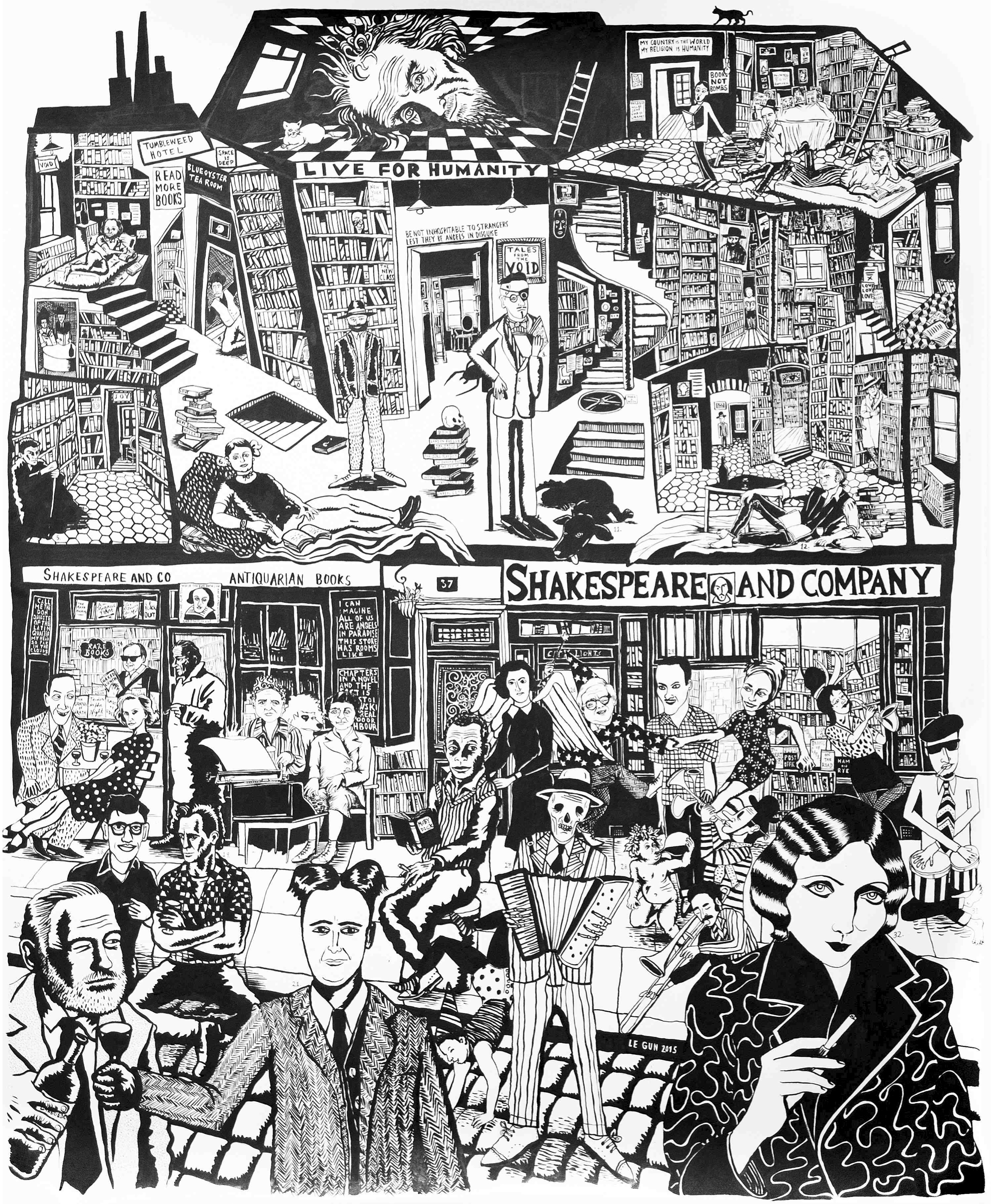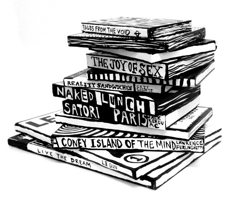 Leave it to the ever creative crew at the Le Gun art collective to come up with a wonderful installation that celebrates Paris’ legendary Shakespeare and Company bookstore. The pop-up show, called “Tales from the Void”, is comprised of a series of faux titled, hand-painted wooden books. The book sculptures were then secreted among the book shelves of the iconic shop.