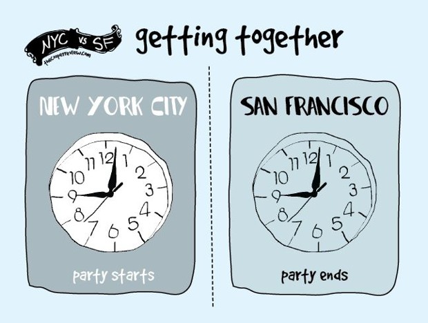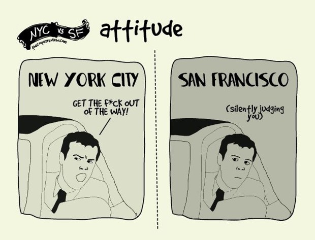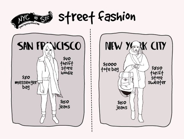 East Coast vs West Coast, New York City vs San Francisco, everyone has an opinion on which is better. After moving from NYC to San Francisco, writer and comedian Sarah Cooper noticed some striking differences and turned her perceptions into a series of witty illustrations.
