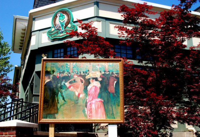 On the other hand, placing Toulouse-Lautrec’s “At the Moulin Rouge” in front of the Green Parrot Tavern makes perfect sense. And the location of Edward Hick’s “Noah’s Ark” up the street from the artist’s former home is spot on.