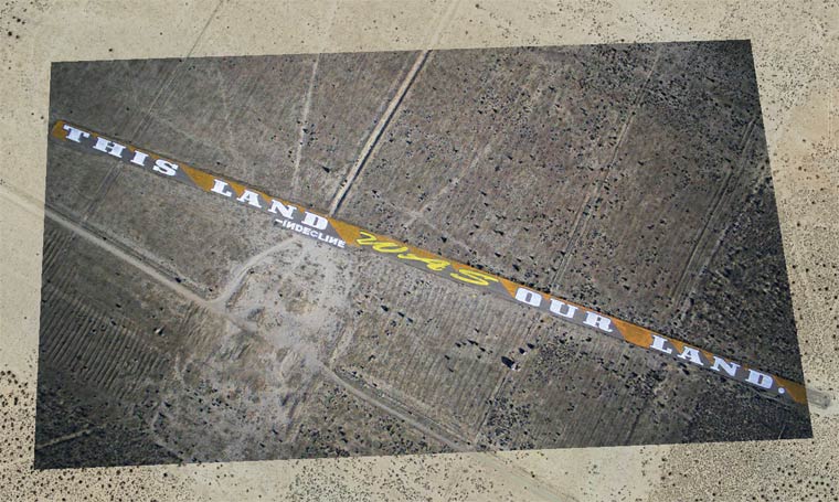 The middle of the Mojave Desert in California seems an unlikely place for street art, but the anonymous collective known as Indecline tagged an abandoned military base there anyway. “This Land Was Our Land” is a half-mile wide tribute to the folksinger and activist Woody Guthrie.