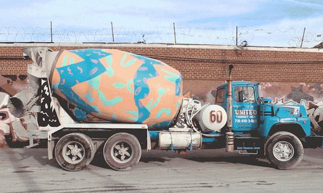 New York City-based painter Andrea Bergart has been transforming s fleet of Brooklyn cement mixer trucks into rolling art works for the past three years. Inspired by everything from World War I naval camouflage patterns to African kente cloth, Bergart covers the rotating cylinders of the massive trucks with colorful moving public art installations. Visit her website to learn more about the project and to see a very cool video.