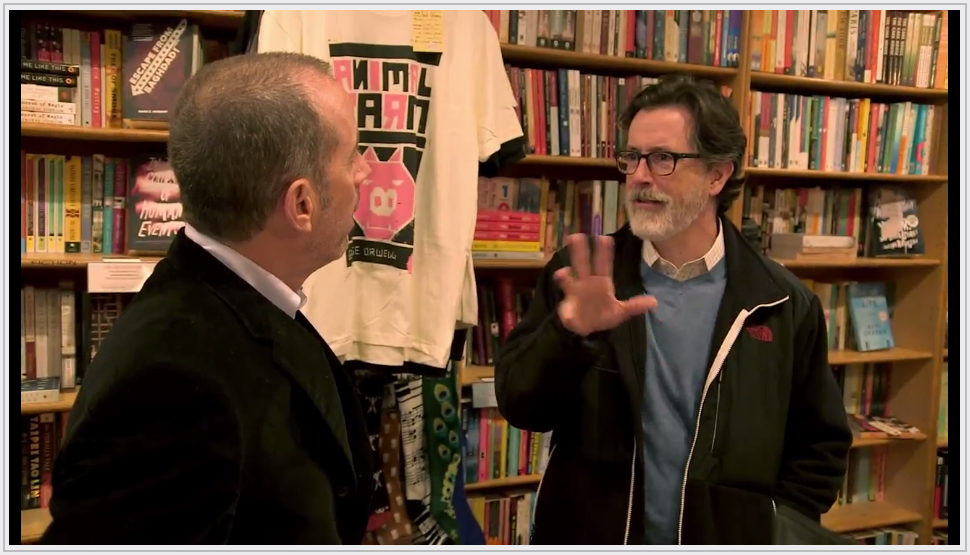 In this season’s finale to Jerry Seinfeld’s fantastic web series Comedians In Cars Getting Coffee, he and the inimitable Stephen Colbert not only get coffee—at the Bluestone Coffee Co. in Montclair, N.J.— they also pop in at Watchung Booksellers to talk books. You can see the entire episode right here.
