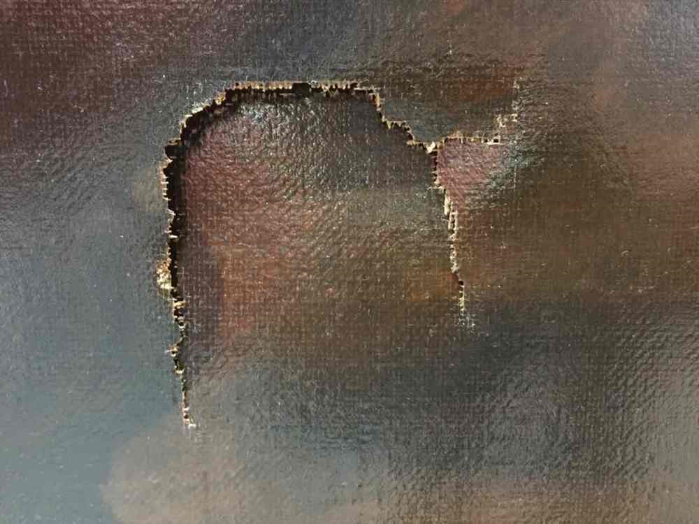 • There seems to be something fishy about that rapid repair job on the supposedly valuable painting. Maybe it was just a copy after all. But I still would like to know why the kid was wandering around the exhibition with a drink in his hand.
