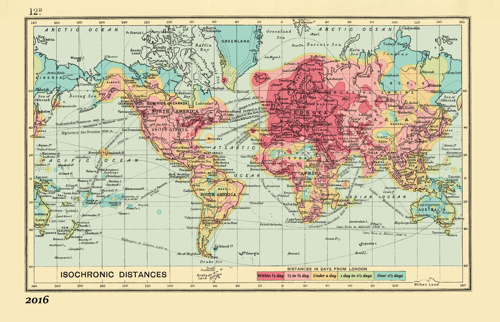 Way back in 2015, a neat old map detailing how long it took to travel from London to diverse destinations in 1914 was all over the internet. Now, the helpful Australian travel search engine Rome2rio has created a companion map that shows how long the same journeys take today by sorting data from 750,000 travel routes to 144 countries. The big surprise is how long it still takes to get some places even with jet travel.