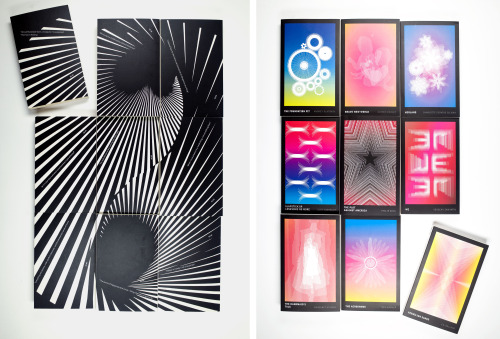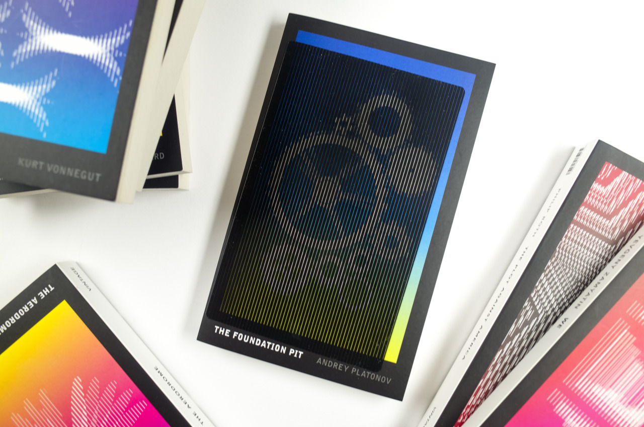 The nine book covers feature highly stylized lenticular illustrations that suit the sci-fi nature of the series. When the covers of each book are aligned together they form a 1965 artwork by Italian artist and designer Franco Grignani called “Centifugal and Centripedal Structure”.