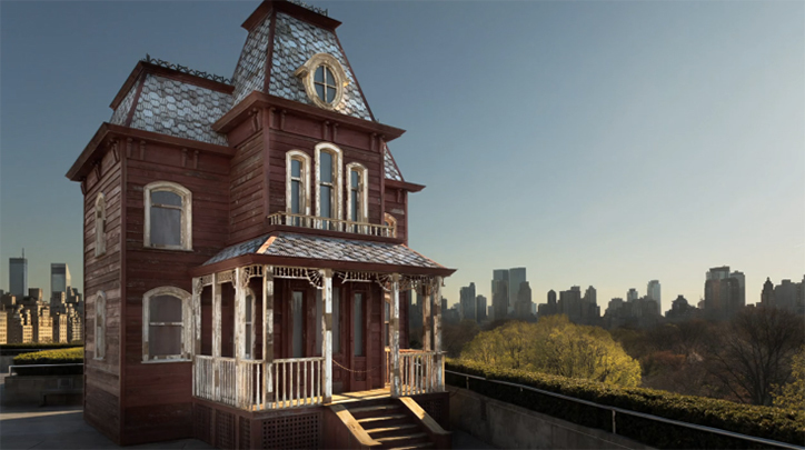 Now British Artist Cornelia Parker has built a replica of the house from Alfred Hitchcock’s iconic film Psycho on the roof of the New York Metropolitan Museum of Art. The commission will be on display until 31 October this year. The work, titled Transitional Object (PsychoBarn), is a reconstruction of part of the iconic weather boarded mansion, consisting of two facades propped up by scaffolding. The 30ft tall artwork was built from materials salvaged from deconstructed red barns.