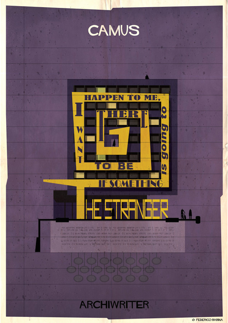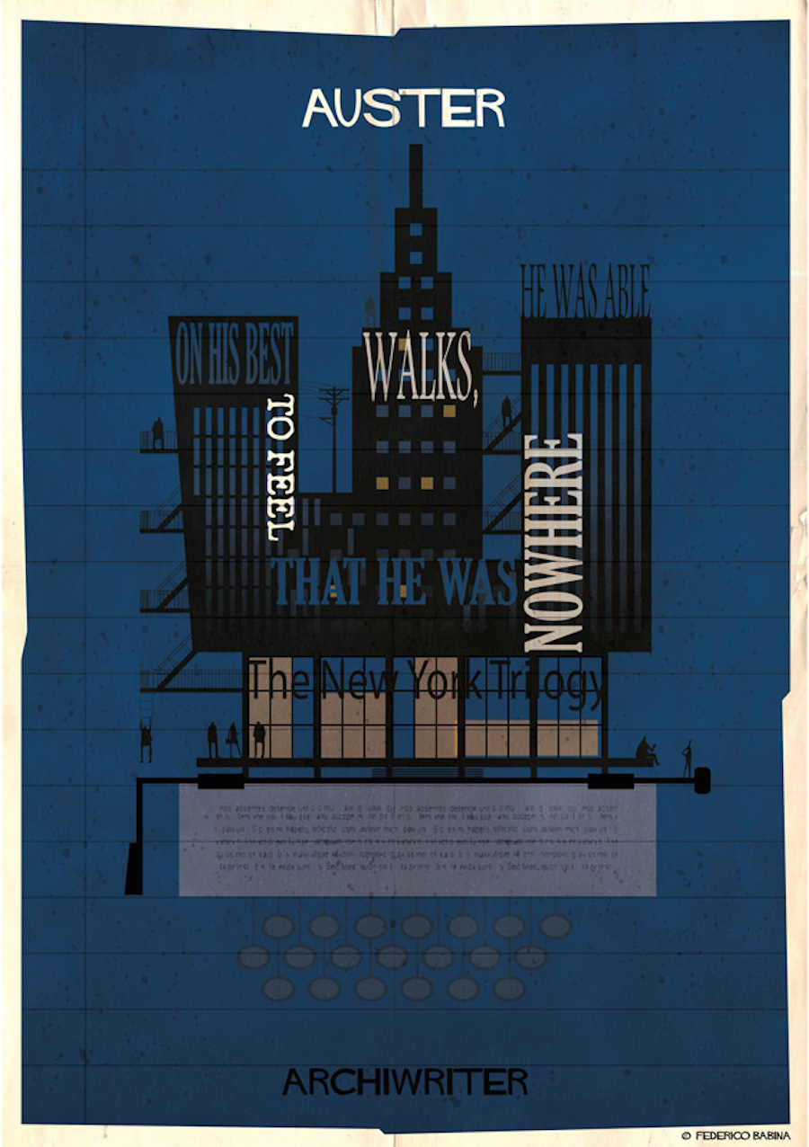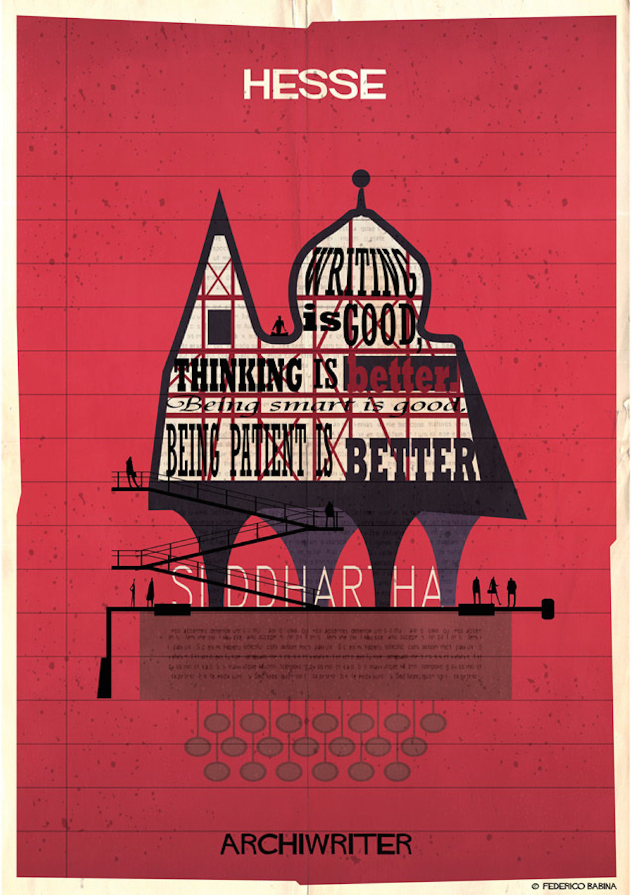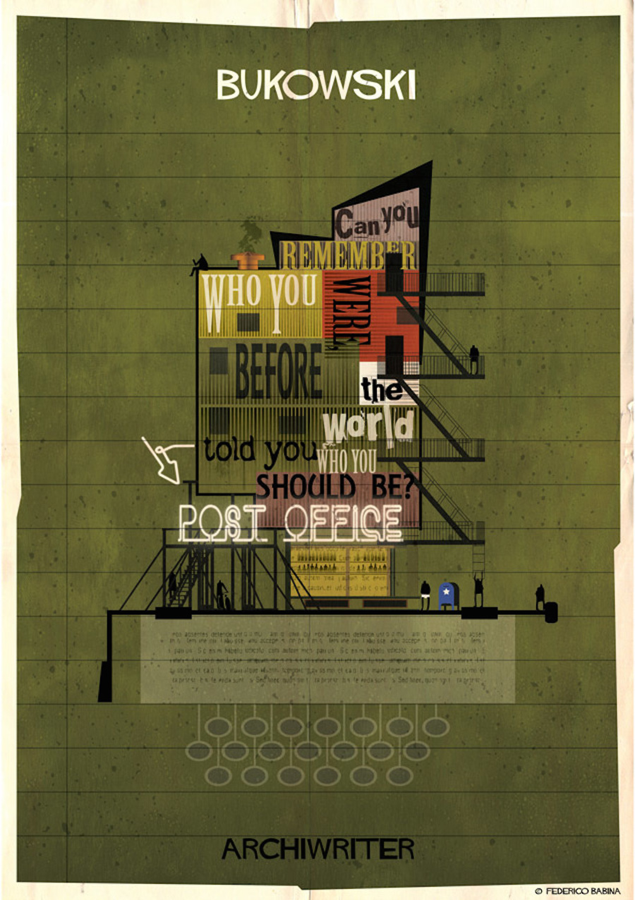 Italian architect and illustrator Federico Babina has created this fabulous series of posters that imagine the houses of celebrated authors. Archiwriter covers many of the world’s greatest male writers. each poster incorporates a famous line and allusion to an appropriate architectural style. You can see more from Babina’s series, and purchase prints, at the artist’s website.