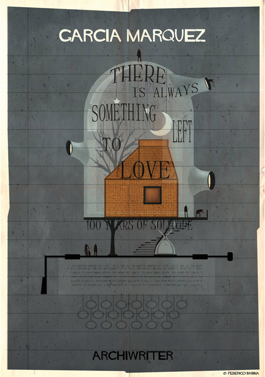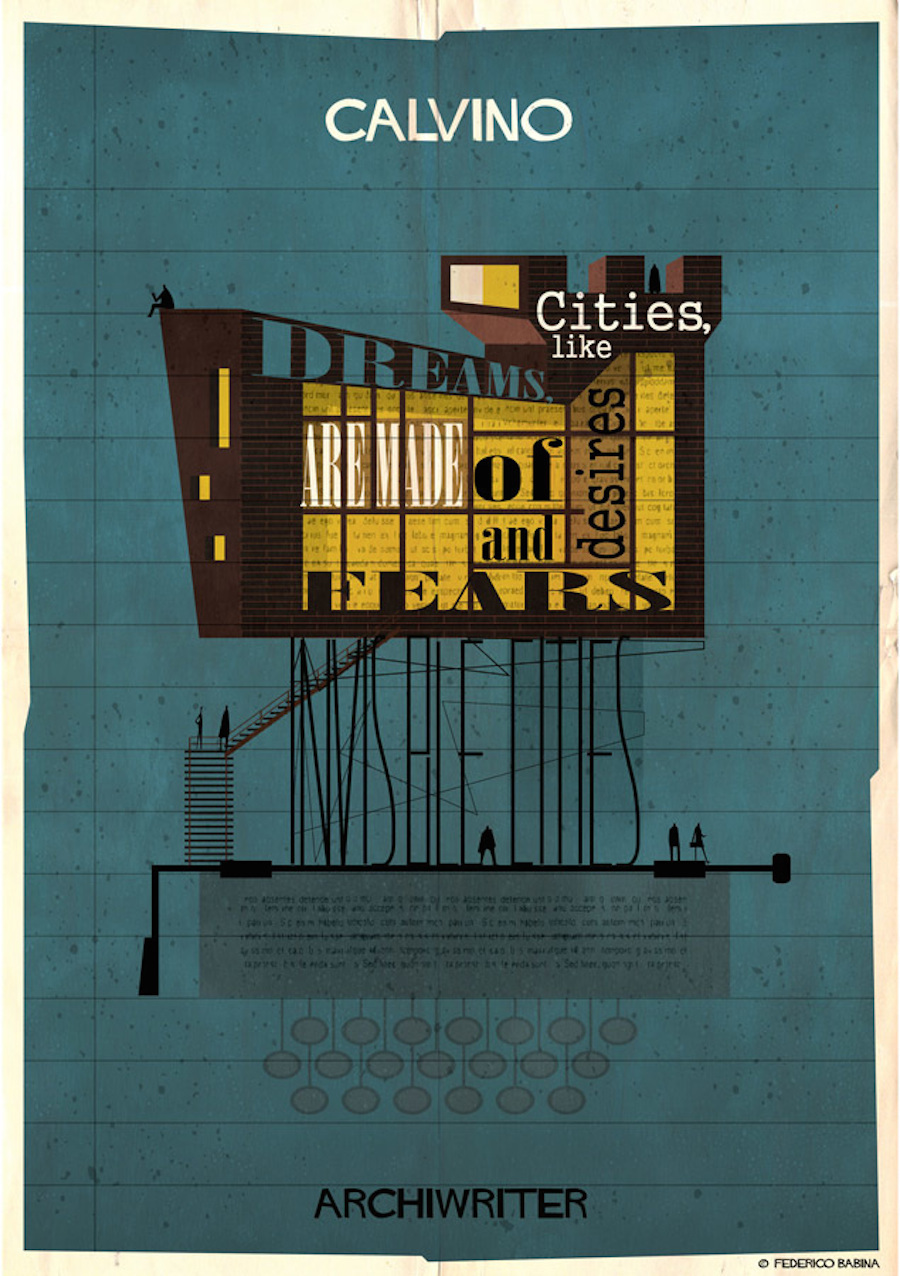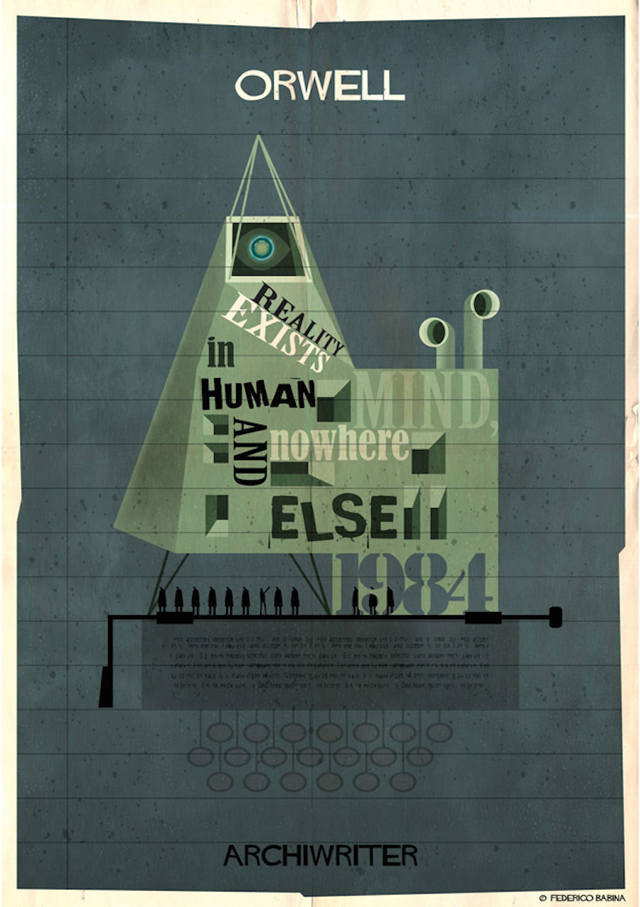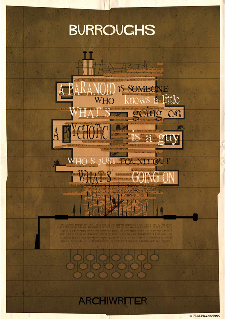 Italian architect and illustrator Federico Babina has created this fabulous series of posters that imagine the houses of celebrated authors. Archiwriter covers many of the world’s greatest male writers. each poster incorporates a famous line and allusion to an appropriate architectural style. You can see more from Babina’s series, and purchase prints, at the artist’s website.