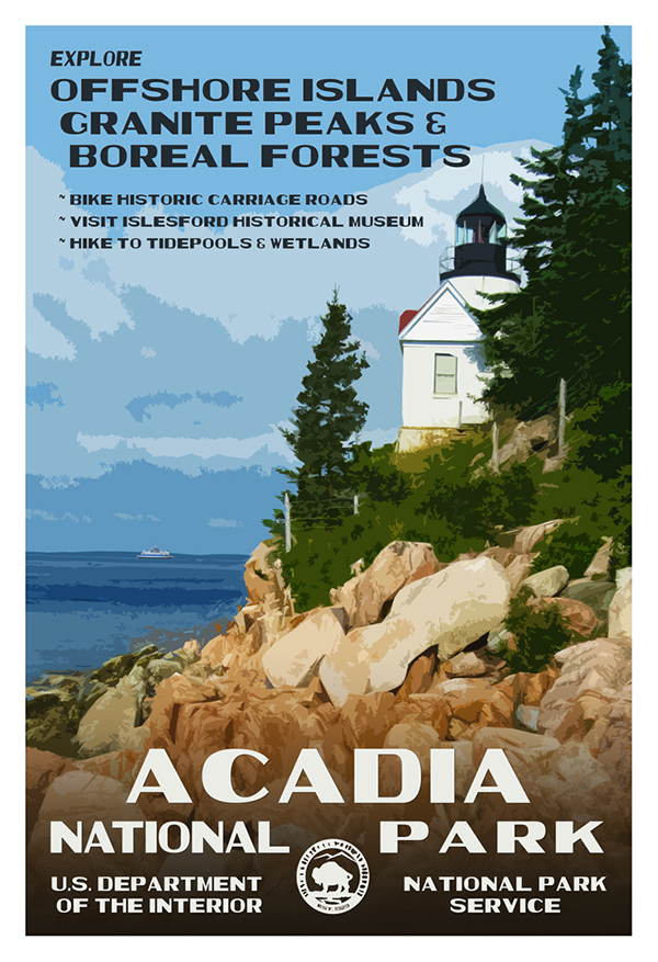 This month, we are celebrating the 100th anniversary of the U.S. Park Service. Over the decades, the Park Service has commissioned wonderful art work to encourage folks to get out and enjoy these national treasures. Some of the most enduring art is in the form of posters created during the 1930s by the Federal Art Project, which provided work for thousands of struggling artists, designers, photographers, and printers.