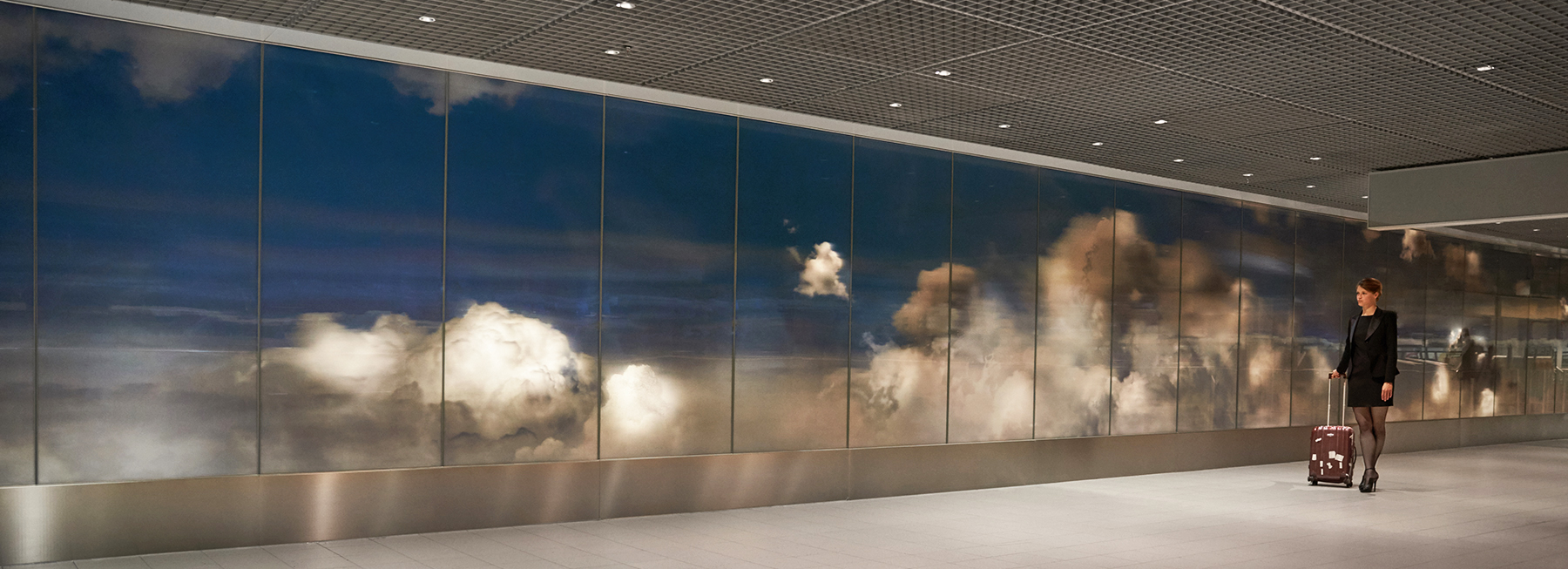 The latest project is a stunning work by light artist Daan Roosegaarde in Depature Hall. “Beyond” was inspired by the 17th century landscape paintings from Dutch masters. Just 10 centimeters thick, the 112 meter-long installation provides an ethereal 3D impression of clouds and movement. Take a look: