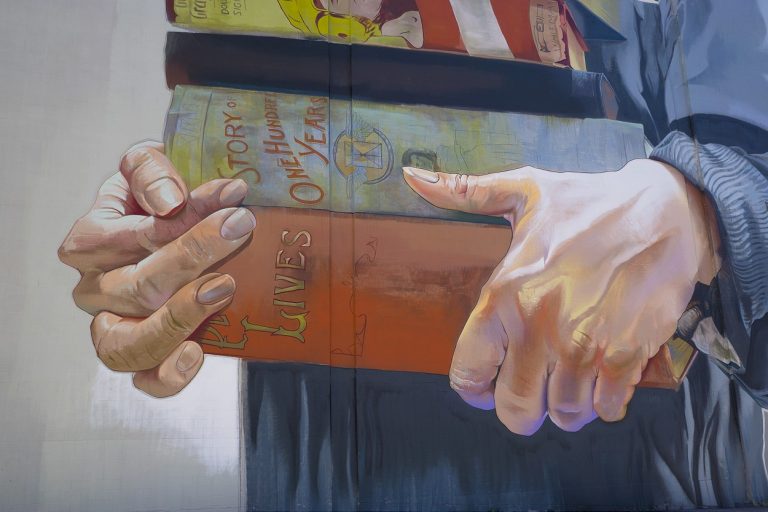 German street artist Andreas von Chrzanowski (aka Case Maclaim) recently completed this wonderful mural for the Jacksonville, Florida Art (Re)Public Project. The piece, which is located in the heart of the city on Forsyth Street, incorporates books with titles relating the the city’s long history.