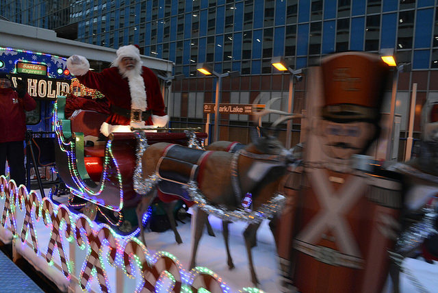 I know that I’ve shared this before, but this year is the 25th anniversary for Chicago’s CTA Holiday Train. Every year since 1992 the Chicago Transit Authority has wrapped trains with thousands of lights and holiday decorations. They even have an open sleigh car for Santa and his reindeer. The carriage interiors are festively outfitted with multi-colored lights, garlands, and bows. The trains are running on all lines until Christmas Eve.