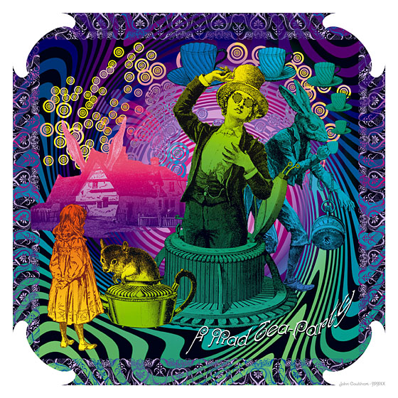 Faithful reader, and occasionally contributor, Evan Smythe has sent these images of an amazing Alice-inspired calendar from the brilliant book designer and illustrator John Coulthart. I love the Victorian Psychedelia vibe of the eye-popping art work. Apparently the calendar is seven years old. Maybe we can hope for an update soon.