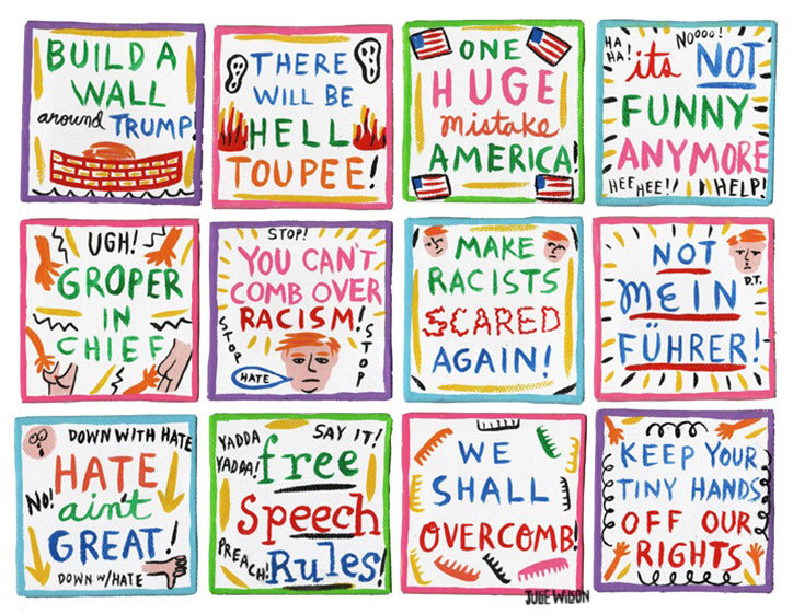 Since November, a website has been compiling anti-Trump cartoons and comics. Now the New Yorker’s art editor Françoise Mouly and her daughter, writer Nadja Spiegelman have edited the contributions for the protest comic named Resist!, which is being printed in a run of 55,000 copies, to be distributed for free in Washington D.C. on January 20th, Trump’s presidential inauguration day, and at the Women’s March the next day.
