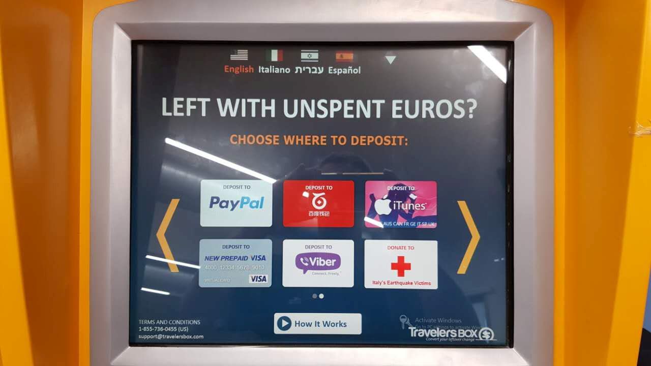 The new TravelersBox kiosk service that’s popping up in airports around the world is just the ticket for this nearly universal travelers’ dilemma. Already available in ten international airports in seven nations, the simple,automated service allows flyers to deposit leftover coins or bills and receive iTunes credits, gift cards, store vouchers, make charitable contributions, or even direct deposit to digital accounts such as Paypal.