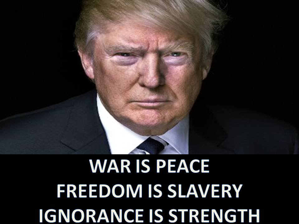 As millions of enraged U.S. citizens and supporters around the world take to the streets today—including me—to protest the ascension to the Presidency of the illegitimately elected tumefied, orange klepocrat, we are also ironically noting the anniversary of the death of Eric Arthur Blair (aka George Orwell) on this date in 1950. Today, more than any time in the past, the prophetic neologisms that Orwell create resonate with thoughtful people . The witless cretins who voted for the great tangerine carbuncle seem all to comfortable with the doublethink required of imbeciles willing to support this vulgar, loutish demagogue. It bears restating the obvious, but we will hold the accomplices to this madness accountable in the future. At the moment, it may appear that ignorance is strength, but truth and fact will eventually prevail. Down with Big Blubber !