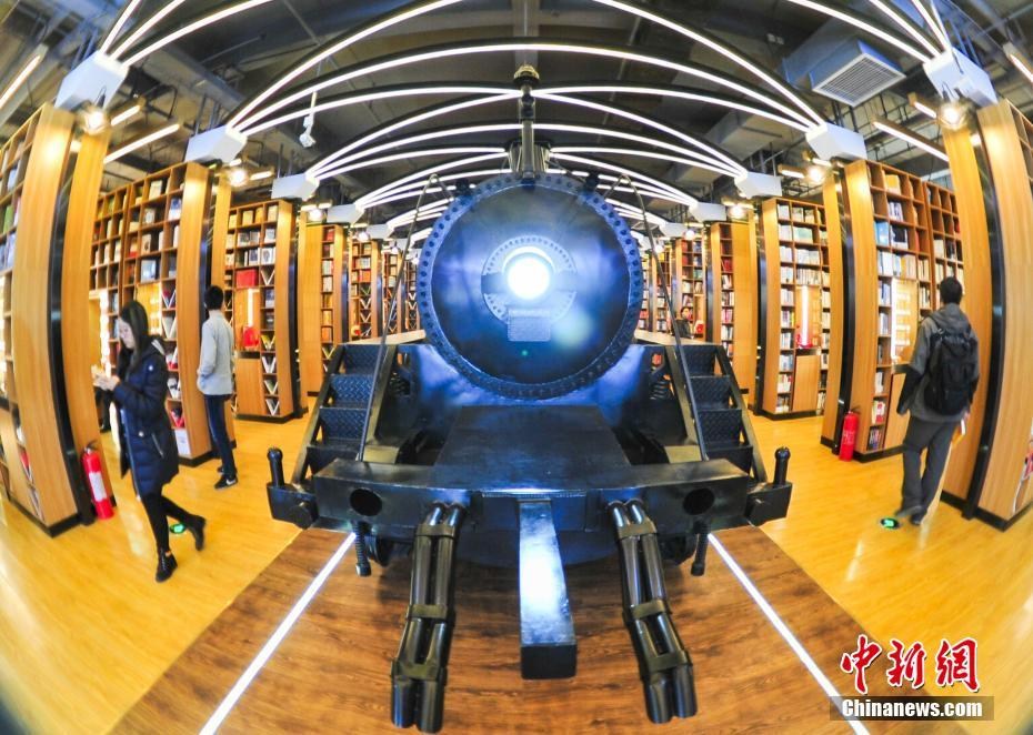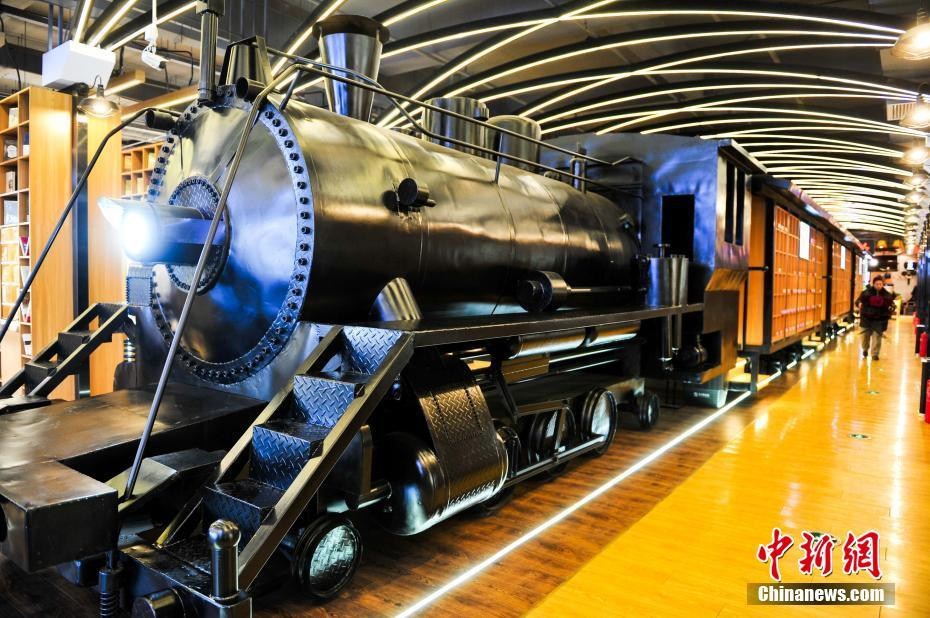 I don’t know how this vintage steam locomotive found its way to the middle of a bookstore in Shenyang, China, but I’m onboard with the concept of trains in bookshops. Along with the engine, they are using the old carriages for bookshelves.