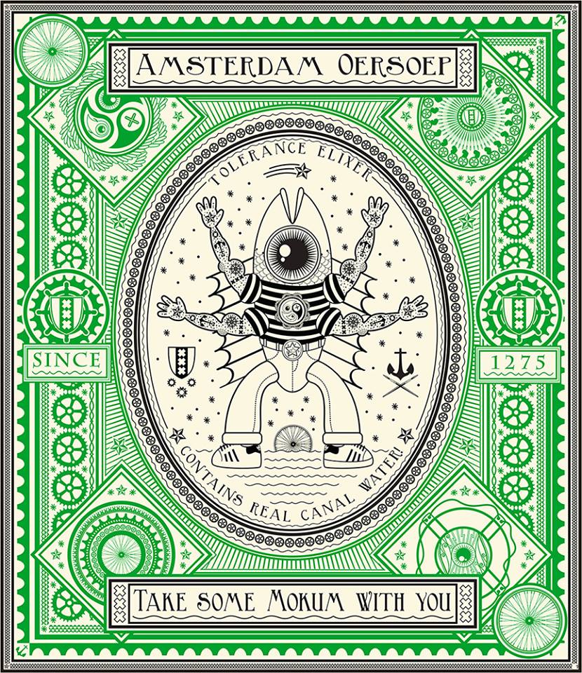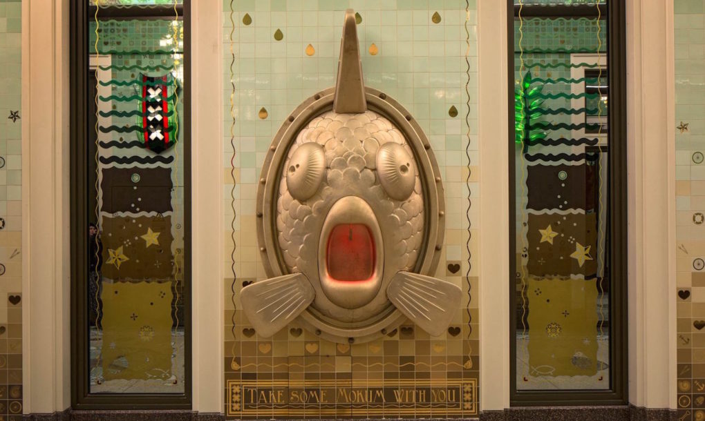 The Beuerspassage has been renamed Oersoep or primordial soup—Amsterdam slang for canal water—and lavishly decorated with local nautical symbols. The walls, ceiling and floors are covered in polychromatic mosaics, tiles, glass and mirrors. There are even gilt chandeliers constructed from recycled bicycle parts.