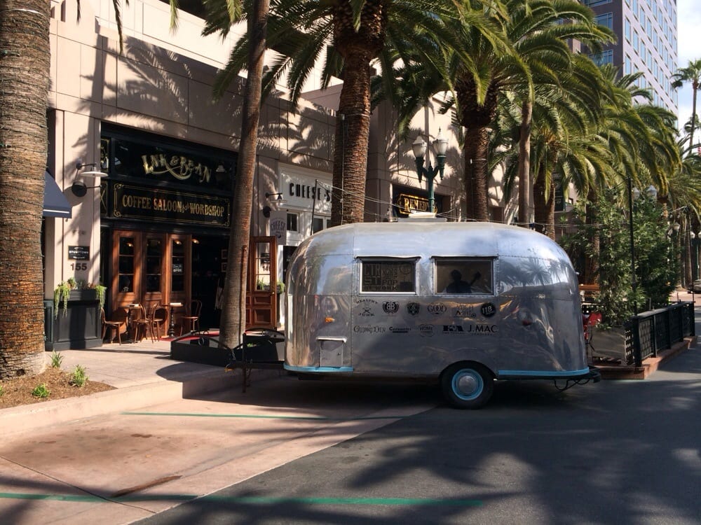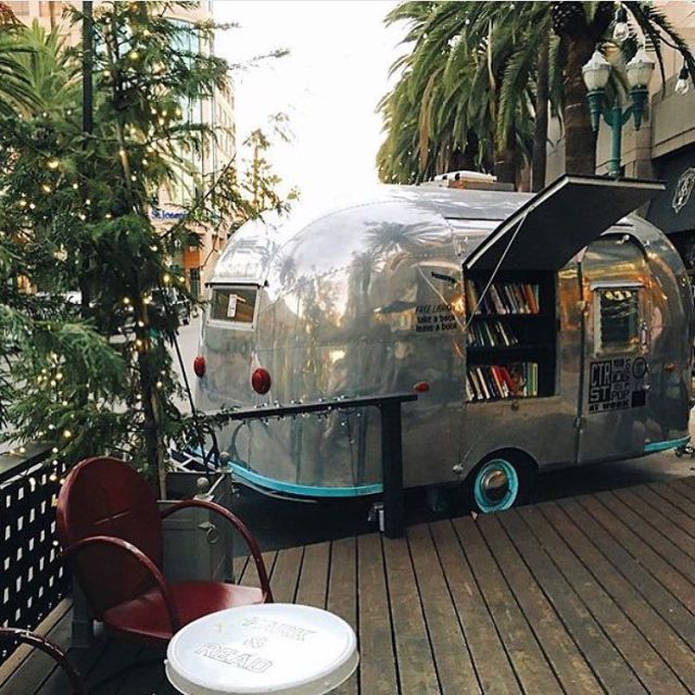 Ink & Bean is a popular coffee spot in Anaheim, California. One of their draws—besides serving Stumptown coffee—is a unique Little Free Library housed in a classic Airstream trailer. Looks like a great spot to hangout just down the road from Disneyland.