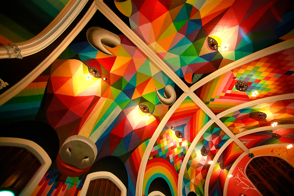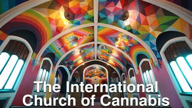 On 4/20/17, a former Lutheran church in Denver, Colorado will officially open as The International Church of Cannabis. The 113-year-old church building, which was decorated by renowned Spanish “ecclesiastical” street artist Okuda San Miguel and Kenny Scharf, is the new headquarters for a group called the Elevationist Ministries. The non-denominational order has no religious hierarchy or theology, just a belief in the spiritual power of marijuana.