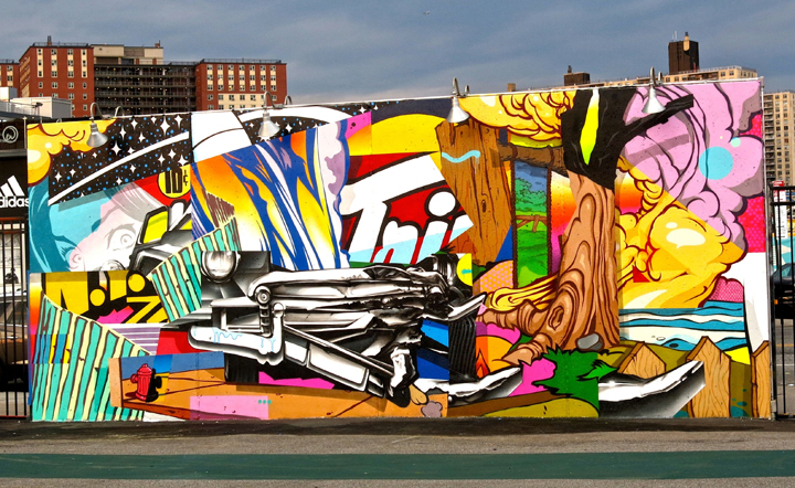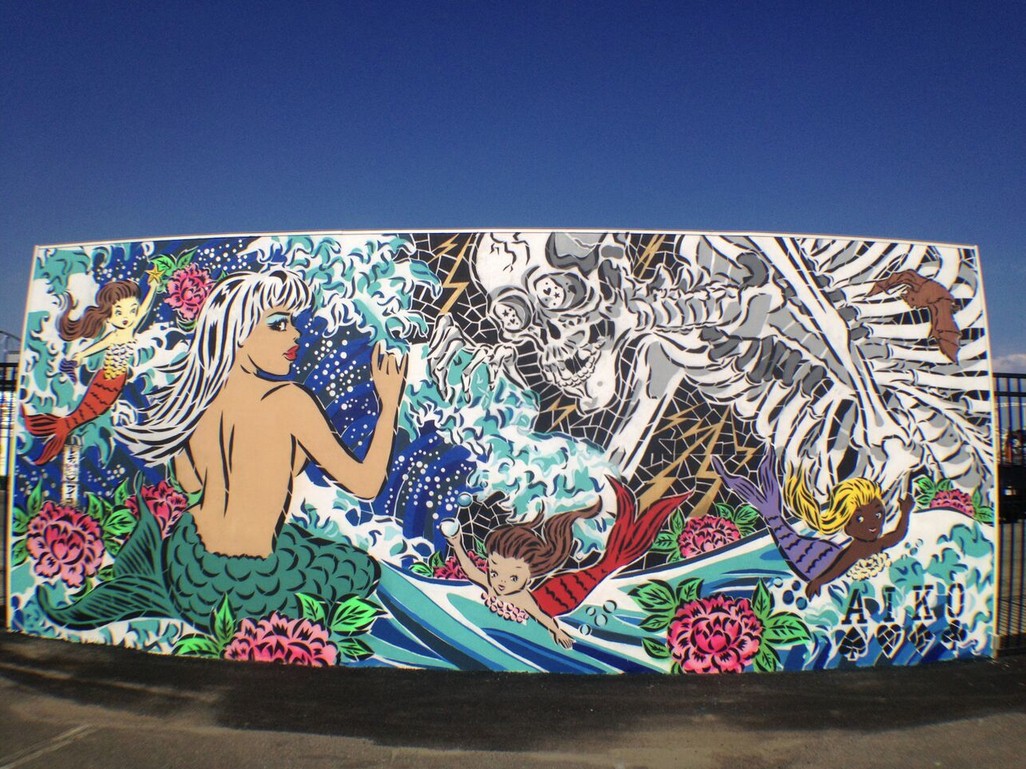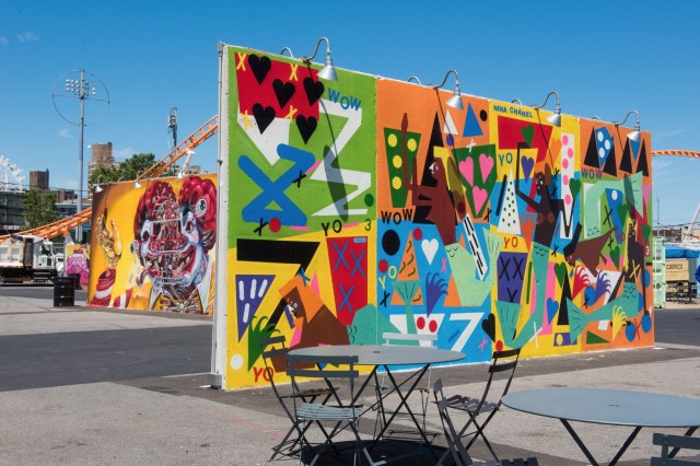 Today the second incarnation of the Coney Walls Project at Brooklyn’s celebrated Coney Island boardwalk is officially opening for the summer season. The popular outdoor exhibition features murals by some of the world’s most famous street artists. The show, which is curated by Joseph Sitt and Jeffrey Deitch, has colorful works by the likes of Ron English, Daze, London Police, D*Face, RETNA, Miss van, Crash, Tatyana Fazlalizadeh, and many more. The project is open daily between noon and 10PM, and can be found by the renowned Nathan’s restaurant.