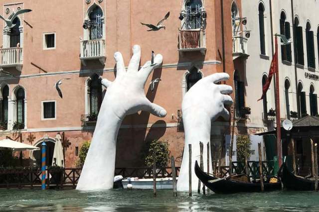 Italian artist Lorenzo Quinn has created an enormous pair of hands emerging from the Grand Canal in Venice. The surreal installation, titled “Support”, was built to raise awareness about climate change and rising waters that threat Venice and cities worldwide. The impressive work is part of the 2017 Venice Biennale.