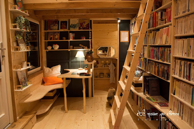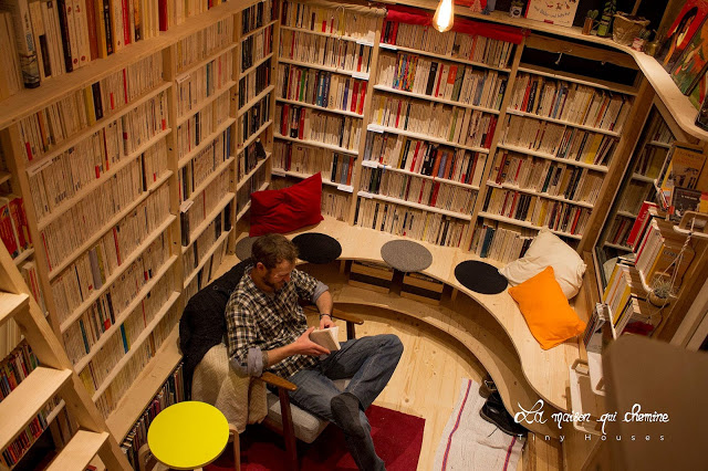 Although there is a long history of traveling regional bookmobiles, La Librairie Itinérante is a unique mobile bookstore and home. Stocked with 3,000 titles, this tiny house serves as both the owner’s home and business. The peripatetic bookshop visits small towns and villages throughout France that lack their own bookstores.