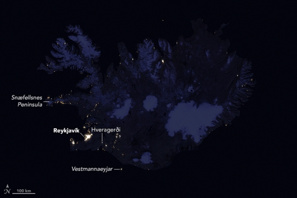 I was recently speaking with a friend about the joys of traveling around Iceland and the incredible emptiness of the rugged landscape. These NASA satellite images of the island nation do a much better job illustrating my point than I could. As the images demonstrate from night time lighting, the human population of Iceland is gathered in the southwest corner of the country around Reykjavik. In fact, more than half of the residents live in the capital region. That other bright spot in the north is Akureyri. The nation’s second largest city with a population of less than 20,000 residents.