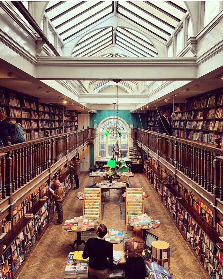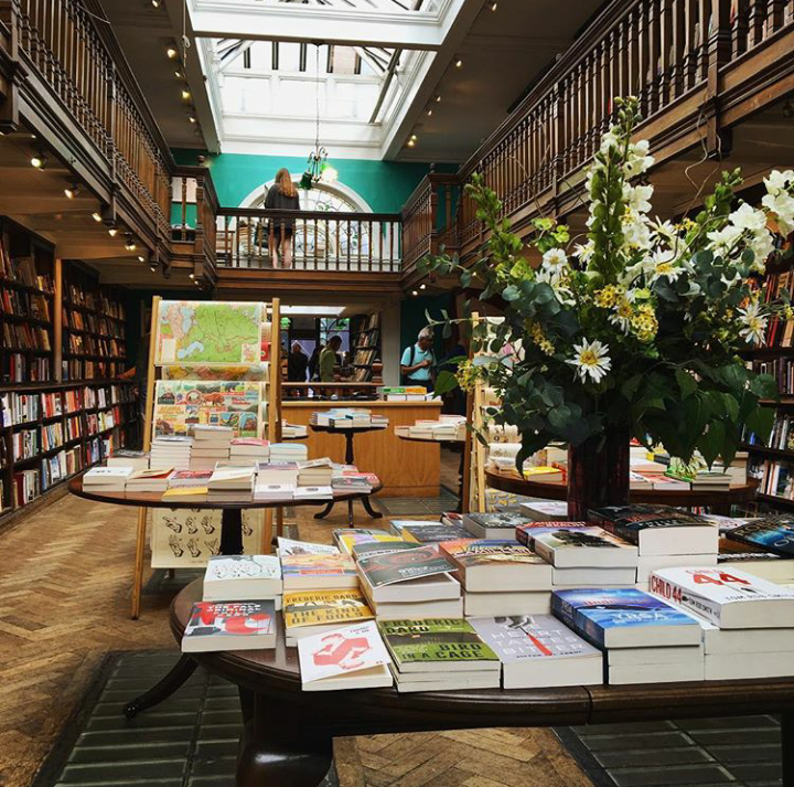 Lined with mellow oak paneling, bathed in natural light from tall glass roof, Daunt books in Marylebone London is an elegant and calm oasis for visiting bibliophiles. The sedate, Edwardian building provides a pitch-perfect setting for one of the city’s best-loved bookshops. Browsing Daunt you will discover the bookseller’s idiosyncratic shelving system, where books are arranged by nation regardless of genre. For example, American works of fiction (On the Road or The Great Gatsby) are displayed with U.S. travel guidebooks (Lonely Planet New York City or Fodor’s Chicago) and American cookbooks. Recently released titles occupy the front of the shop, while quiet rear galleries and beautiful mezzanine provide quiet spaces for hours of browsing.