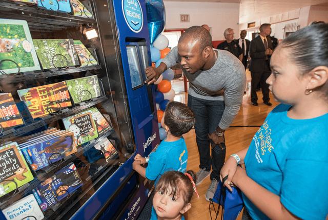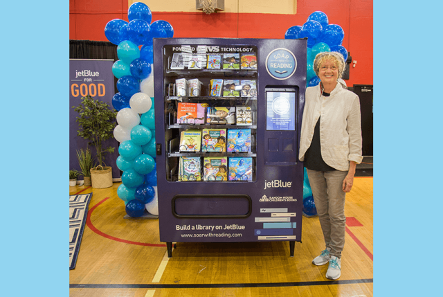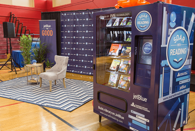 The U.S. budget airline JetBlue, along with publisher Random House and author Mary Pope Osborne have been bringing books to children in U.S. cities that are considered book deserts or communities with difficult access to children’s books. The Soar With Reading project has installed vending machines that allow kids to get free books during the summer months.