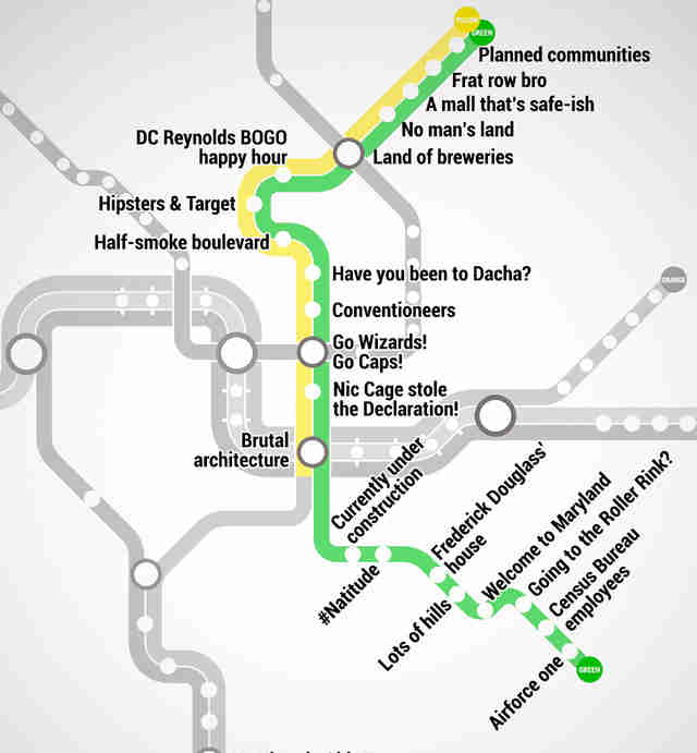 If you are a regular reader of TBTP, you are well aware of my obsession with public transit maps. This one is actually amusing and useful. The folks at the Thrillist Washington D.C. website have augmented the city’s already excellent Metro map to make it even more user friendly. As a frequent visitor to DC, and the author of a travel book on the nation’s capital, I can attest that the map upgrade is spot on.