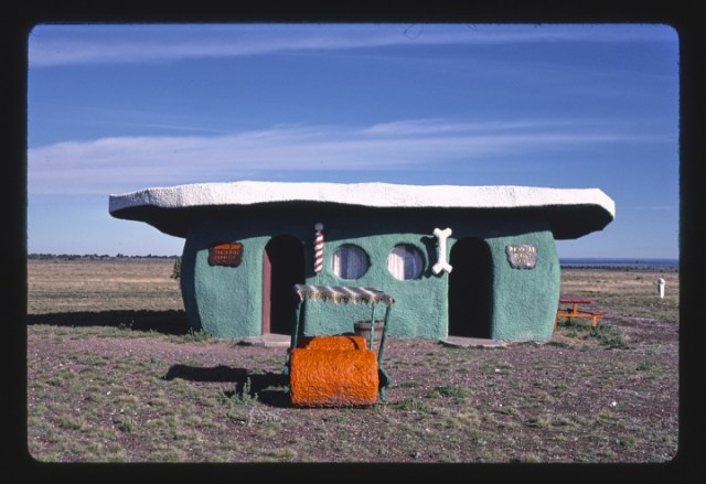 Like many of my 20th century cohort, I miss the marvelously cheesy architecture of mini-golf courses, motels, service stations, drive-in restaurants, and roadside tourist attractions. I remember passing the top sign in the top photo when I lived in Florida in the 1980s.