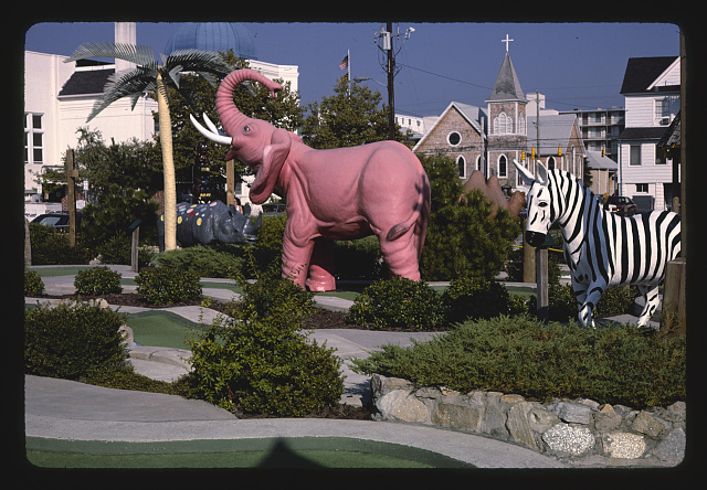 Like many of my 20th century cohort, I miss the marvelously cheesy architecture of mini-golf courses, motels, service stations, drive-in restaurants, and roadside tourist attractions. I remember passing the top sign in the top photo when I lived in Florida in the 1980s.