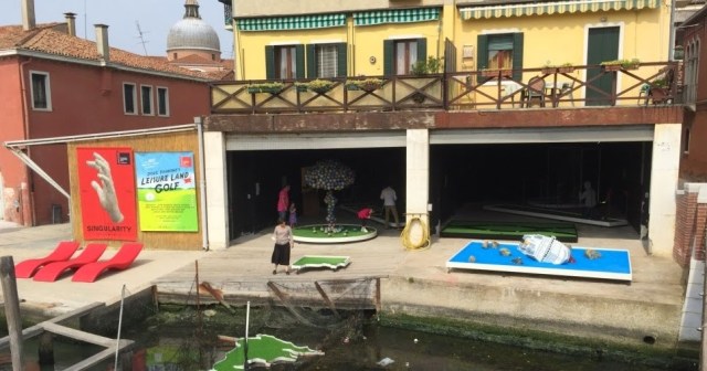 The always amusing UK-based American artist Doug Fishbone continues to spread joy while tackling weighty issues. His ever popular installation Leisure Land Golf, which premiered at the 2015 Venice Biennale, is now showing at the York Gallery in York.