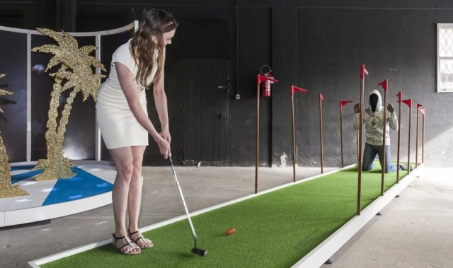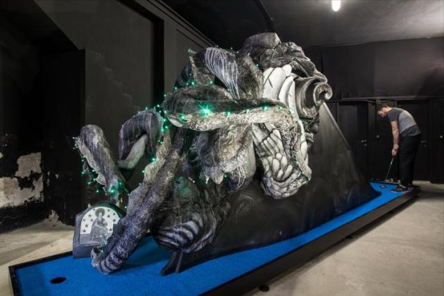 The fully-playable show is a cross between a serious art installation and a functioning mini-golf course. Each of the holes was created by a different artist and they all address grave issues, such as racism, climate change, rampant consumerism, and political oppression.