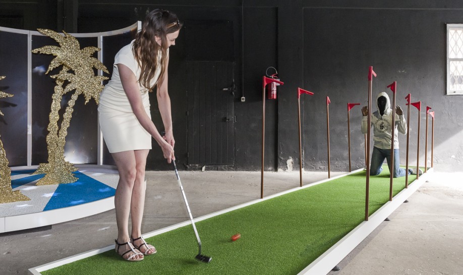 The always amusing UK-based American artist Doug Fishbone continues to spread joy while tackling weighty issues. His ever popular installation Leisure Land Golf, which premiered at the 2015 Venice Biennale, is now showing at the York Gallery in York.