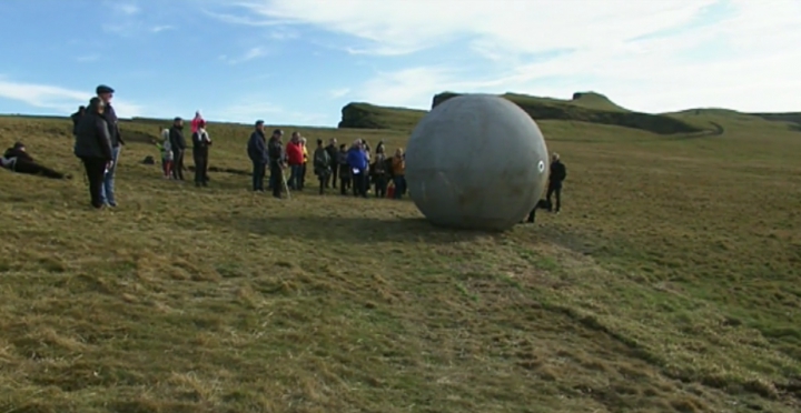 Last year, Reykjavik-based Studio Granda architectural and design group won an unusual competition, sponsored by Akureyri, Iceland’s second city, to create a monument to mark the spot where the Arctic Circle crosses Icelandic territory. The winning design, called Hringur og Kúla, or Ring and Sphere, is a 8 metric ton, concrete globe now set at 66.56°N on the small windswept island of Grimsey 40 km off of the North Iceland .