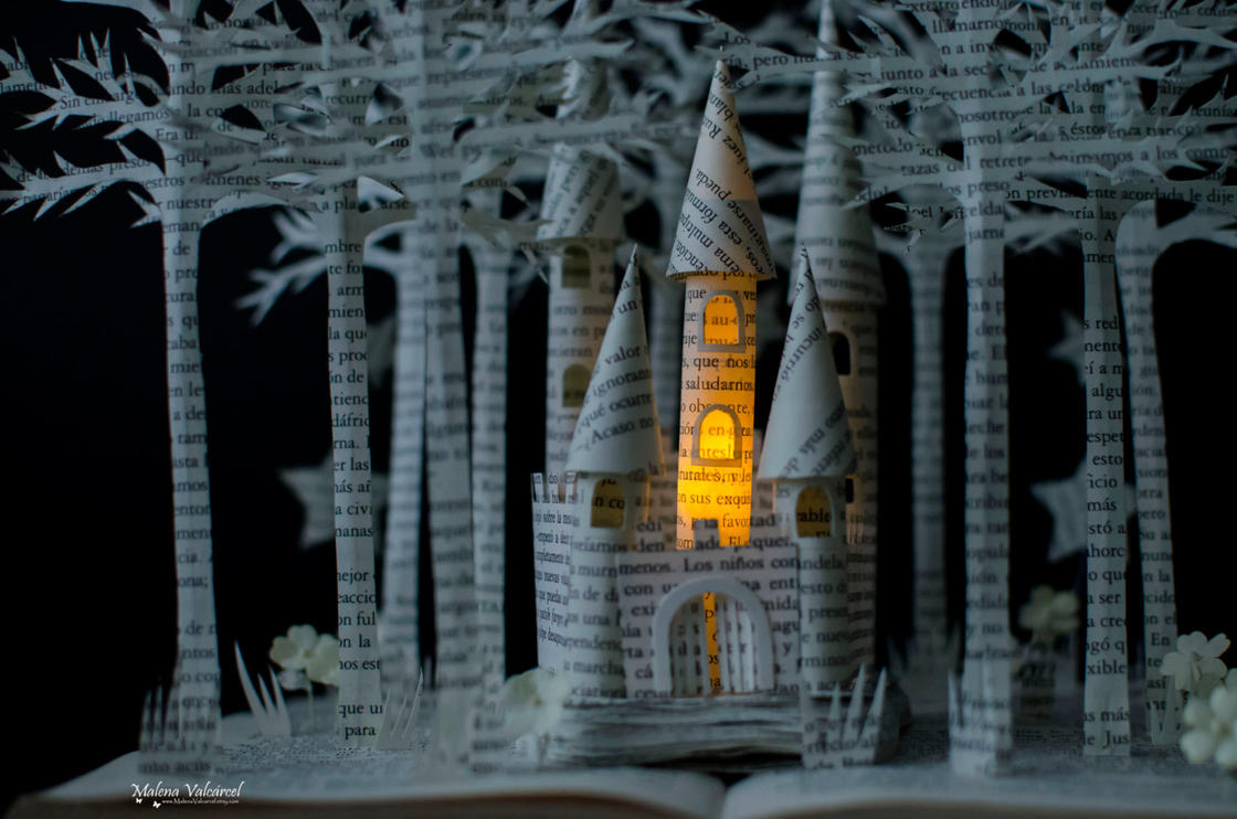 Spanish artist Malena Valcarcel transforms abdondoned books into fanciful, poetic dioramas and book sculptures. You can see more of her lovely work, and even purchase a piece, on her Etsy site.