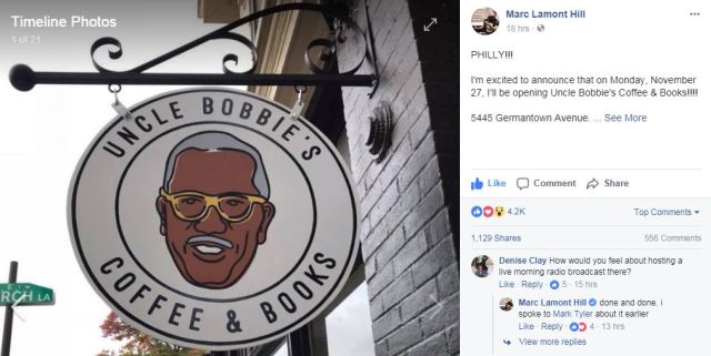 It’s always a happy occasion when a new indie bookstore café opens, but it’s even more exciting when one launches in an under served area.Last week, CNN political commentator and author Marc Lamont Hill opened Uncle Bobbie’s Coffee & Books in Philly’s historic Germantown neighborhood. The bookshop is named in honor of Hill’s late Uncle, Bobbie Lee Hill, who helped nurture the writer and Temple University professor’s love of reading and social justice.