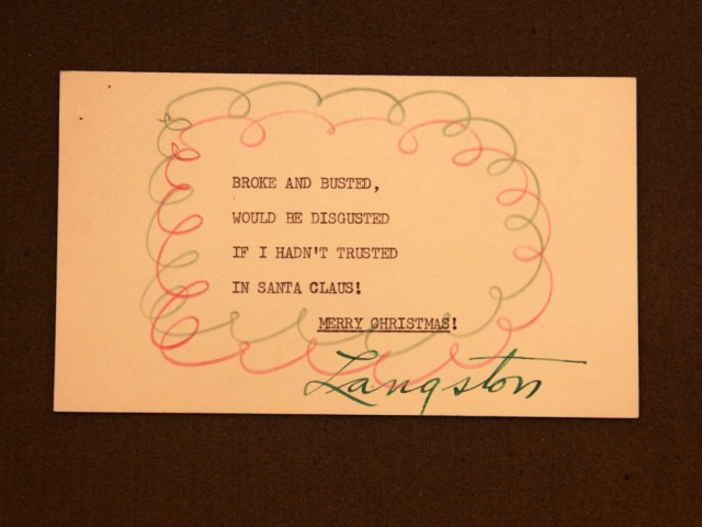 What’s a writer with limited financial resources to do when the holidays roll around and he wants to send gifts? For Langston Hughes, during the holiday season of 1950, the answer was to share some of his wit in homemade Christmas postcards.