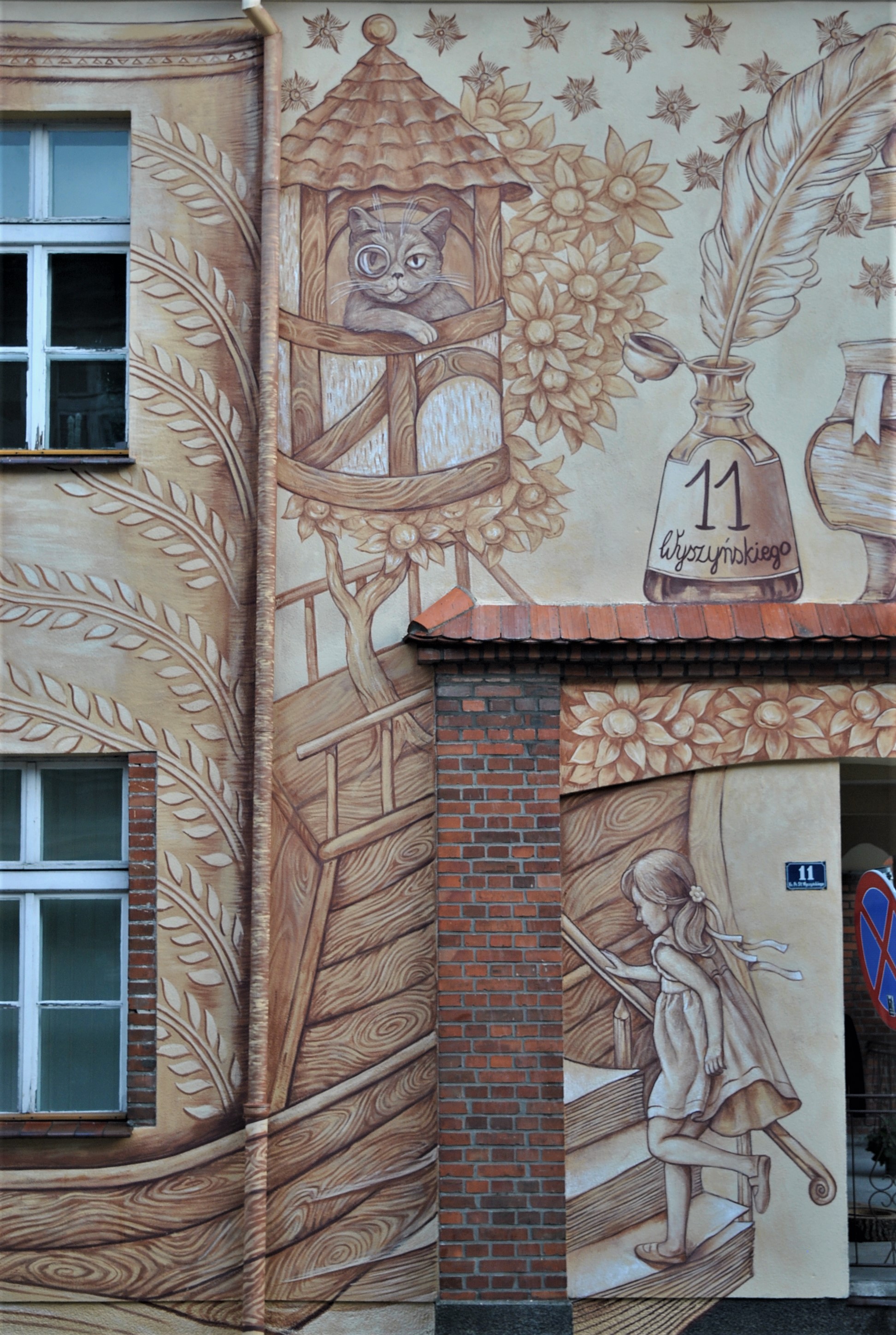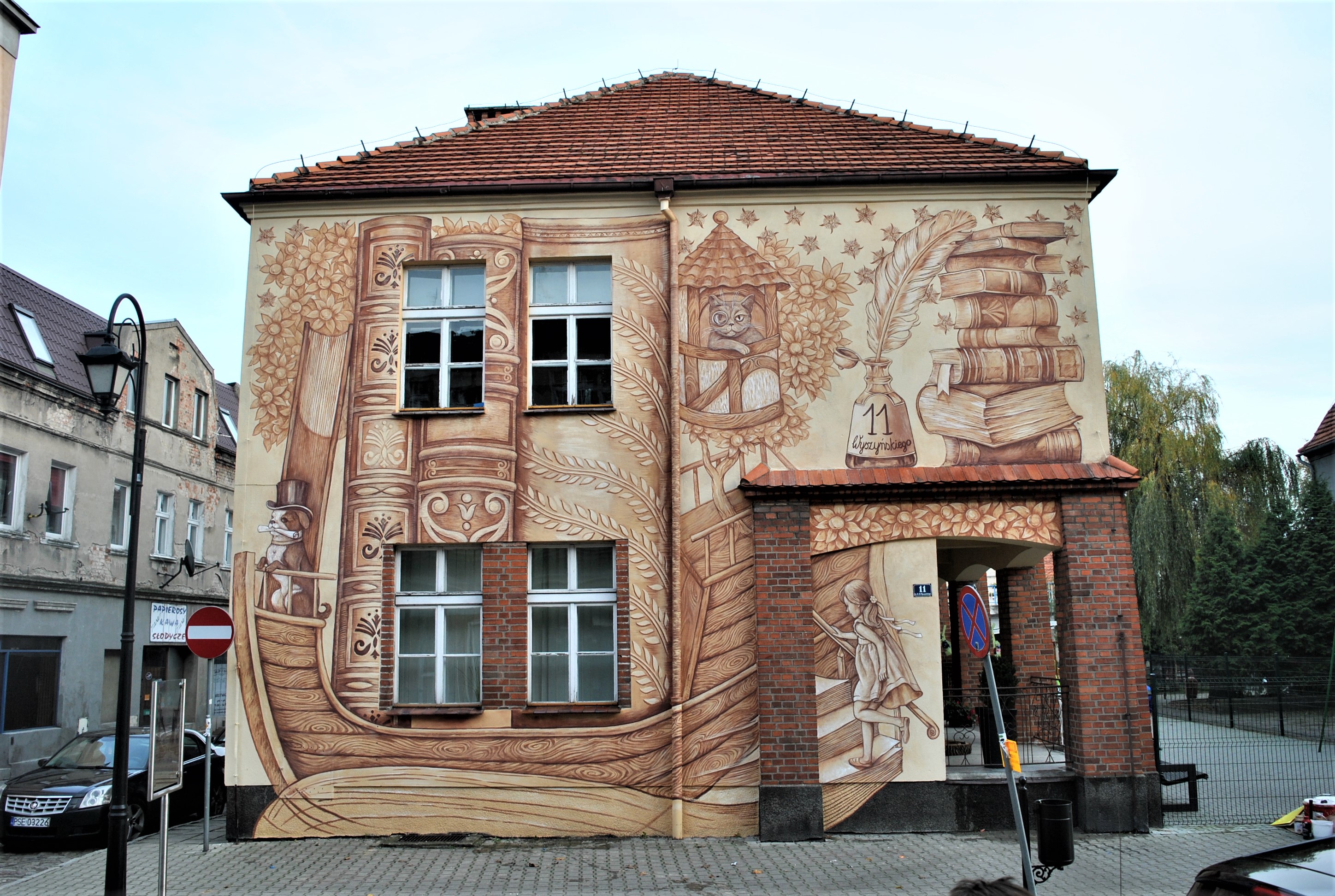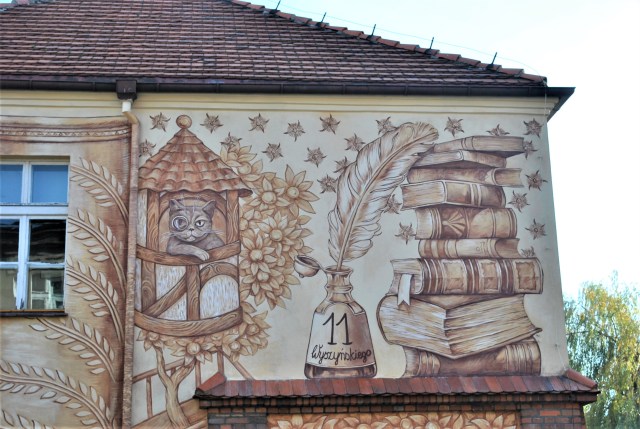 The brilliant folks from Poland’s WowWow Studio street art collective recently completed a wonderful mural across from an elementary school in the historic town of Srem near Poznan in western Poland. The work is designed to encourage children to read.Works for me.