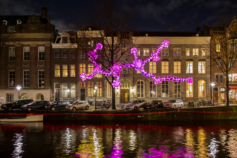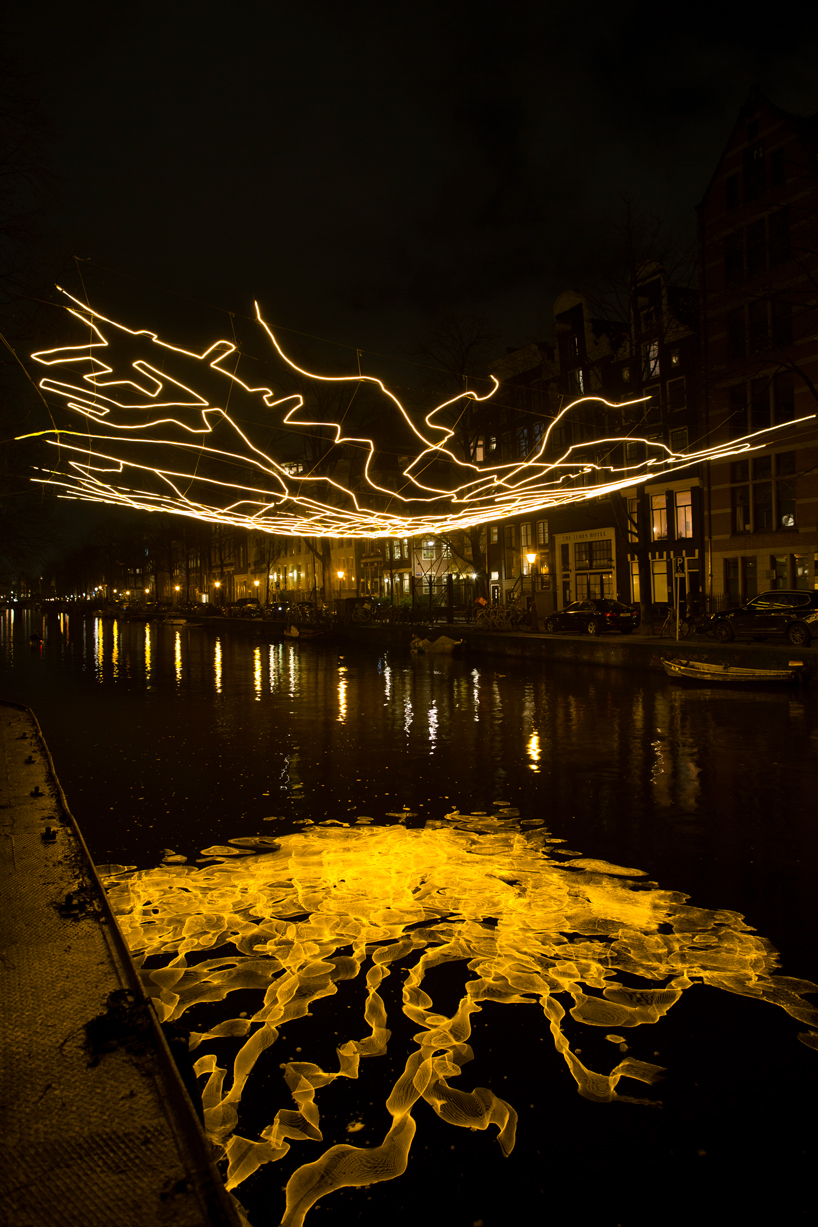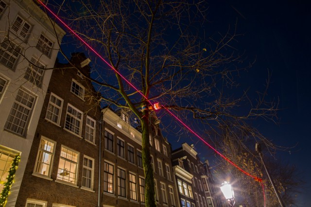 My favorite works from this year’s festival are Driton Selmani’s “Eye to Eye”, which is colorfully warding-off the evil eye, and Ai Weiwei’s “Thinline”, which is a subtle 7.5 km long line of red light weaving through Amsterdam streets and canals.